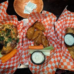 Have been coming here on and off for a few years since moving. It's a great spot to come and hang out with some friends, catch a game or see an old movie playing in the background. Pretty big spot with lots of seating and a large bar top. I personally enjoy ordering at the register vs the chaos that can sometimes come with ordering at the bar and having people crowd all around you. Their wings are the star of the menu but they have other good items.